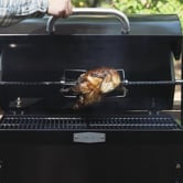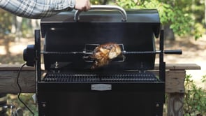 Roast up to 33 LB of juicy, succulent meats with this small-game rotisserie, designed to deliver flavor-enhanced food with perfectly even cooking every time. Powered by a 4-watt motor, it rotates smoothly at 3 RPM for consistent, even roasting. Its high-efficiency hood retains heat for faster cooking, directing warmth from the coals back to the meat to cut cooking time and save on fuel.